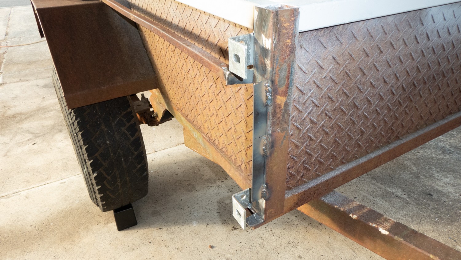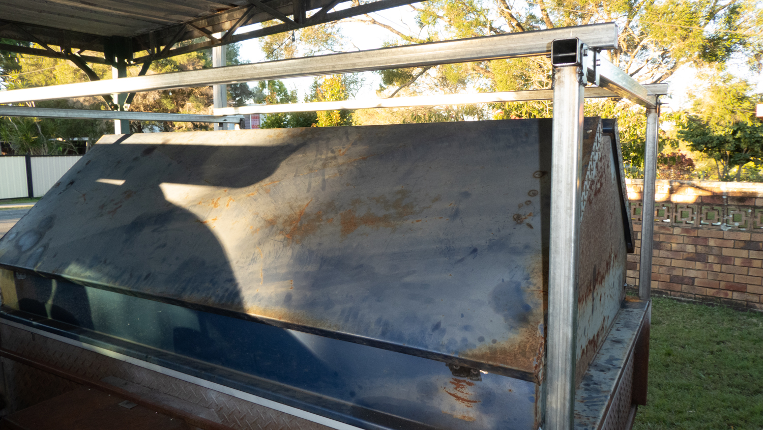 I purchased a second hand tradesman trailer that is lifted and the plan is to clean up the rust and configure it for camping.